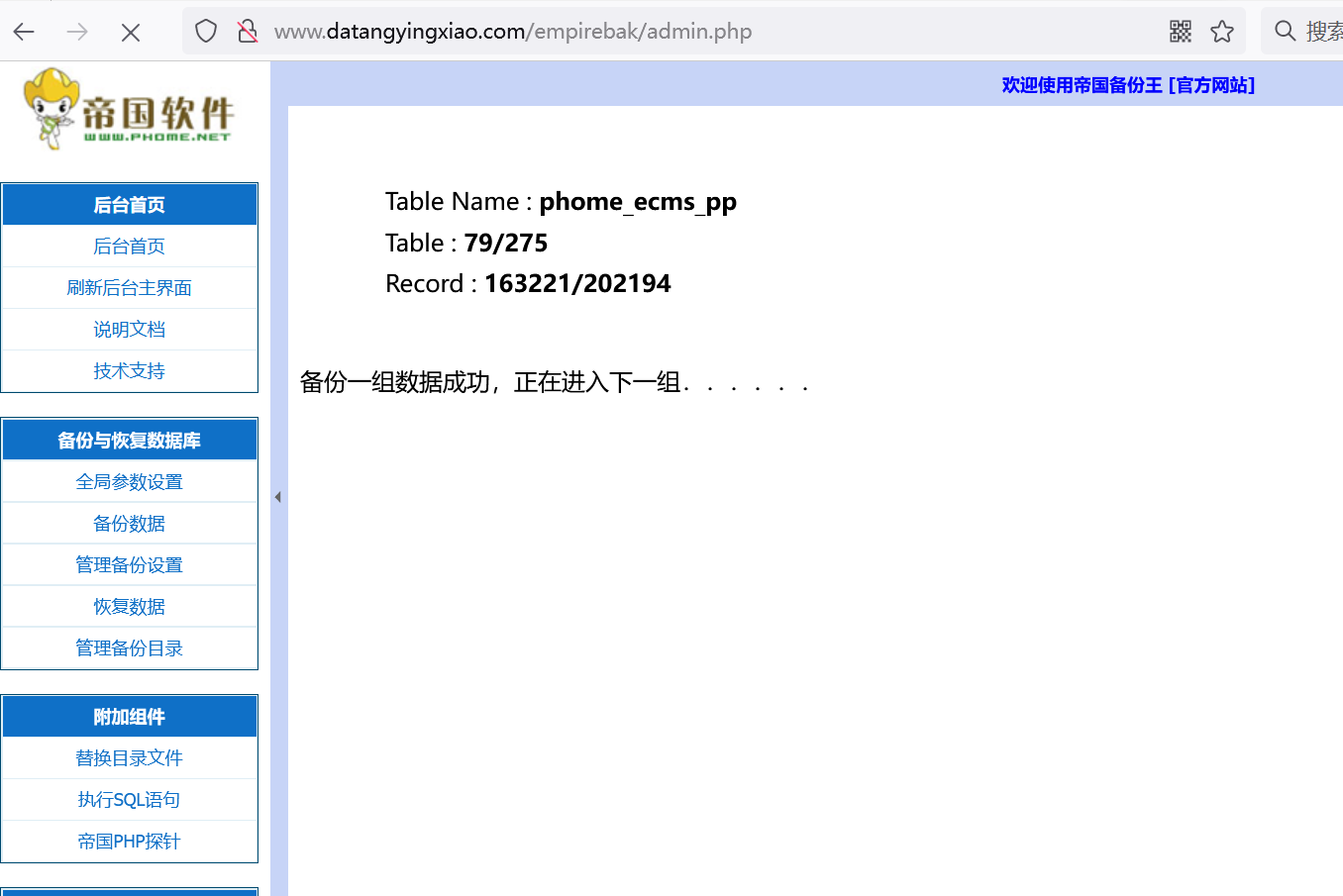 - 备份网备份数据提示错误:Fatal error: Allowed memory size of 134217728 bytes exhausted (tried to allocate 129404160 bytes) in /www/wwwroot/www.datangyingxiao.com/empirebak/class/db_sqli.php on line 123解决办法: 使用帝国备份网