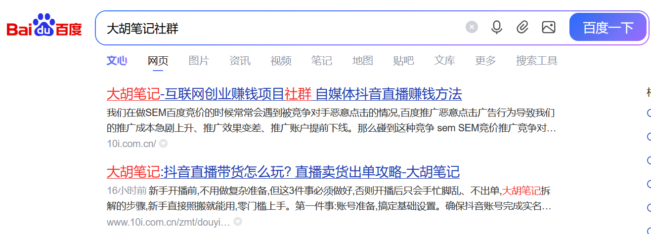 大胡笔记SEO记录,目前搜索大胡笔记个人品牌词,百度搜索结果页中没有任何排名,随着时间以及优化的进行,我本人相信用不了多长时间。全网的用户再搜索“大胡笔记”个人品牌名的时候,百度搜索结果一定是第一名。